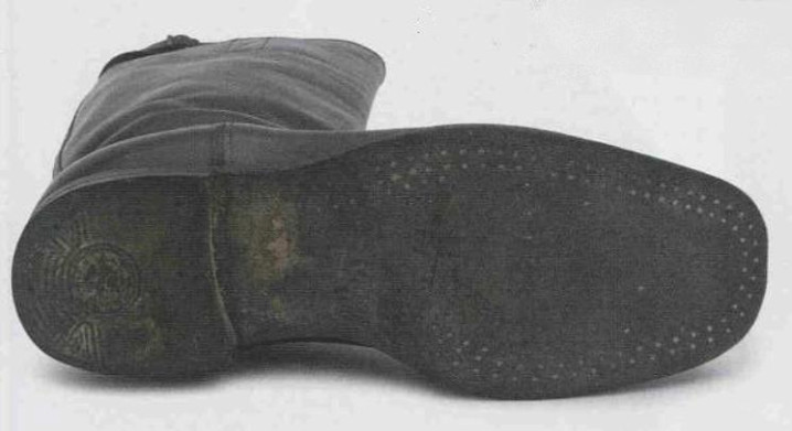 私人定制的马靴通常以民用款式为基础,普遍存在违反军服条例的设计元素,比如图中靴筒上边缘的松紧束带。